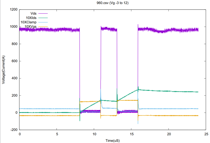 The GaN device shows good DC parameters and excellent dynamic switching behavior with small increase in dynamic RDSON up to 960V (see figure below).
